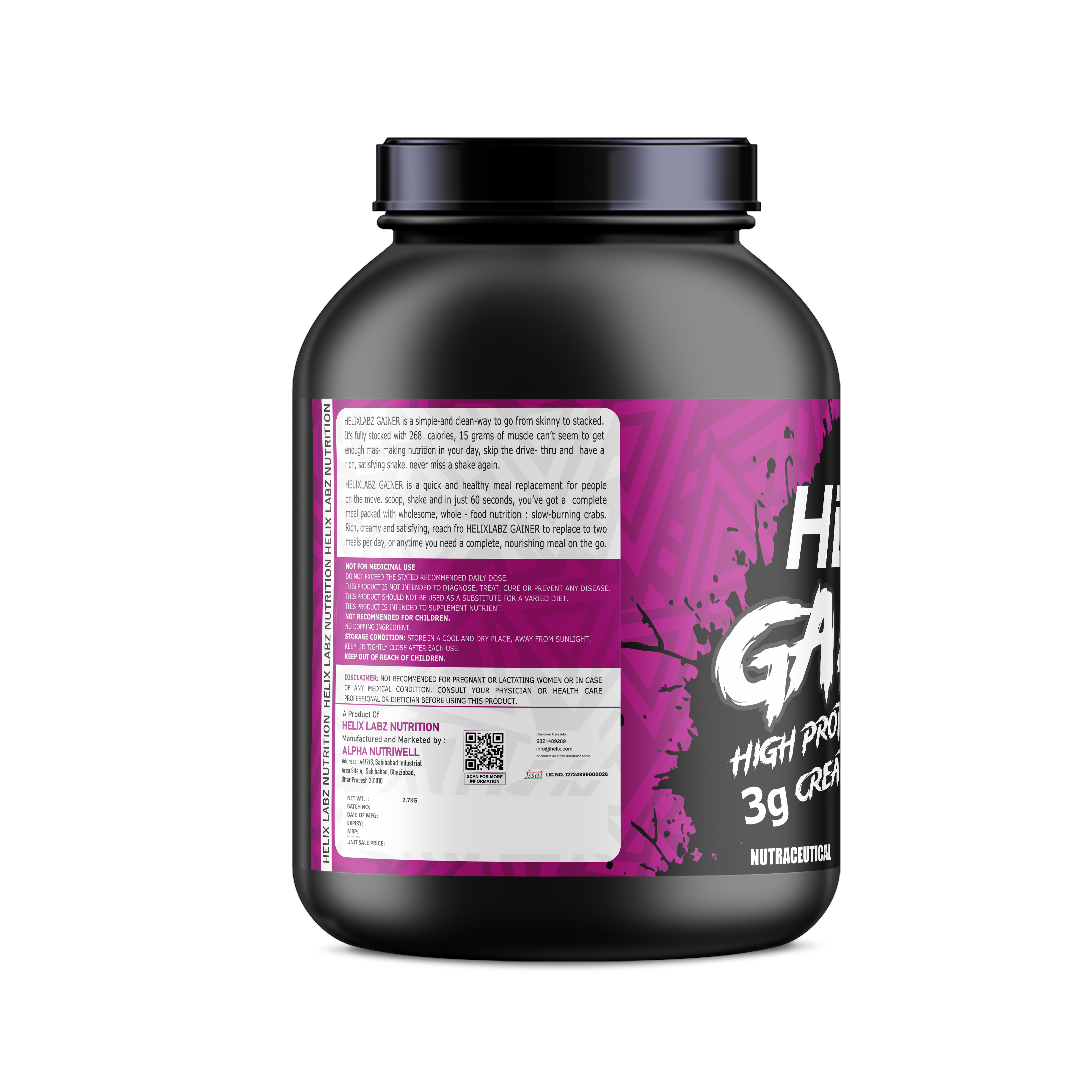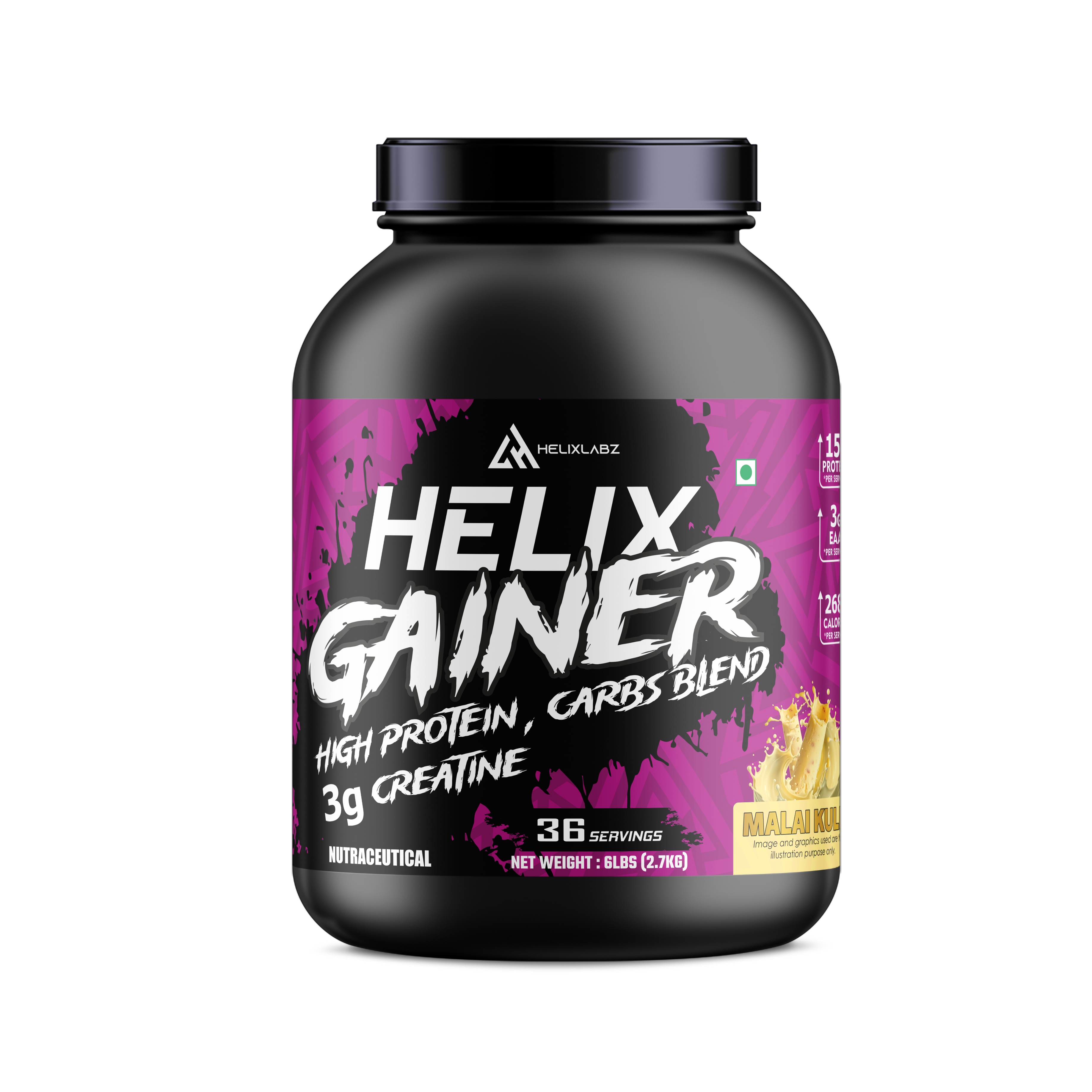 Helix Labz helix gainer provides energy and boosts muscle mass by including essential nutrients. This premium product from Helix Labz became a pinnacle of muscle-building supplements. Each serving is packed with 15 g high quality protein and 48 gm complex carbohydrate. These supplements are beneficial for those who have been exercising extensively without seeing a significant mass gain. It's crucial for promoting overall performance and endurance during demanding training regimens. Each serving is packed with high-quality protein and complex carbohydrates, providing the ideal gain weight for those looking to bulk up and optimize performance.